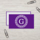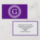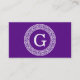 Purple Wht Greek Key Rnd Frame Initial Monogram Business Card