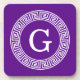 Purple Wht Greek Key Rnd Frame Initial Monogram Coaster