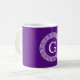Purple Wht Greek Key Rnd Frame Initial Monogram Coffee Mug