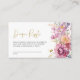 Add a touch of elegance to your baby shower with this Purple Wildflowers Diaper Raffle Card. Featuring a delicate watercolor floral design in soft blush, pink, and gold tones, this card is a stylish way to invite guests to participate in a diaper raffle. With its modern script and customisable text, it’s a perfect addition to your baby shower suite. Encourage guests to bring diapers and win a prize, all while keeping your event cohesive and beautiful!