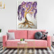 This canvas features artwork by Dorothy Arrington. The picture is a purple willow tree, completed with watercolor and ink.