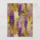 Keep in touch with friends and loved ones with a beautiful chiyogami pattern postcard featuring purple wisteria on a gold background.