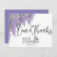 Purple Wisteria tree Lavender Wedding Thank you design. Design is easy to personalise, if you wish to change fonts please Click to customise further. Pastel Colours are perfect for spring and summer Weddings. The design reflects modern and simple Wedding decorations.