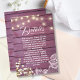 Complete your rustic wedding theme with our charming "Purple Wood String Lights & Lace Wedding Details Enclosure Card". This delightful card features rustic wood accents, twinkling string lights, and intricate lace details, capturing the essence of rustic romance. Add important details such as accommodation information, wedding website, or special instructions to ensure your guests have all the information they need. Don't miss out on this opportunity to create a cohesive and beautifully coordinated wedding stationery set. Shop now and let your rustic wedding vision come to life!