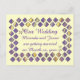Purple and yellow diamonds form a border around purple and yellow butterflies, on custom wedding invitation postcards. The text is written in purple on a pale yellow background. The text is easy to customise on the template forms. There are matching items in this store. Thank you for shopping at CherylsArt on Zazzle.