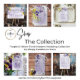 This simple but elegant design features a bouquet of purple, yellow, and lavender pansies and other flowers with greenery. The background is a purple watercolor splash on a textured white watercolor paper background. It's part of the Purple & Yellow Floral Modern Wedding Suite created by Simply Farmhouse Press.