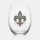 Purple yellow green Mardi Gras fleur de lis Stemless Wine Glass