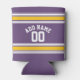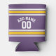 Purple Yellow Jersey Stripes Custom Name Number Can Cooler