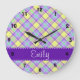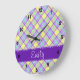 Purple & Yellow Plaid Pattern Large Clock