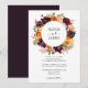 Modern Rustic Purple Violet Yellow Rose Peony Burgundy Red Floral Watercolor Wreath Autumn Fall Country Wedding Invitation