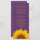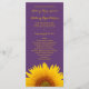Yellow sunflower flower and purple personalised affordable wedding program. The design features a bright and cheerful yellow sunflower on a violet pruple background. Simple and elegant floral design. NOTE: This is a flat printed design without any raised or 3D embellishments. To change the text, use the personalise options. Or, for more extensive changes (font, font size, font colour, text placement), choose customise it. You can even change the purple background colour if you want. This is a great inexpensive wedding program for a wedding in the summer or fall / autumn or a wedding with a yellow sunflower flower theme.
