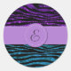 Purple Zebra, Blue Zebra, Glitter Zebra, Monogram Classic Round Sticker