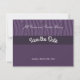 A modern design featuring shades of purple with a zebra stripe pattern along the top. Customise this Save the Date with your information.