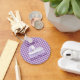 Adorable Button Keychain Featuring Purple Gingham Vintage Baby Ruffled Bassinet Design - Perfect for Baby Shower Favours - Personalise with Mum-to-Be's Name!