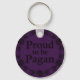 This whimsical keychain features a purple circular design with black roses frames the bold text "Proud to be Pagan," symbolizing spiritual identity and celebrating Pagan culture. Finished as a mixed media art print.