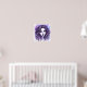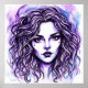 This whimsical poster features a vibrant print of a young woman’s face close up, finished in a purple white blue watercolor print.