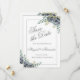 Design features a bouquet of purplish hydrangeas with a bouquet of eucalyptus greenery with a lite grey border. It goes with our matching wedding invitations collection.