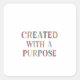This captivating "Created With A Purpose Sticker" design features an array of pastel hues, each word standing out in its unique colour combination. The clean typography enhances the message's impact, making it a striking centerpiece for any space.