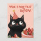 Purr-fect Black Cat Cute Feline Pink Birthday Postcard