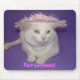A prim and proper little white cat in a flowered hat and pearls. I never get tired of looking at these big green eyes, even though this little pistol is the reason we dare not buy any leather furniture, ...since she tried to kill a leather purse with her bare teeth. We don't want to risk it.