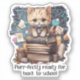 Celebrate your feline pride with the playful 'Purr-fectly Ready for Back to School' sticker. This cute cat design features a whimsical kitty perched on book stacks with a blackboard backdrop adorned with math formulas, blending academic humour and cat-loving charm. Perfect for cat lovers who are ready to embrace back-to-school vibes with a touch of feline superiority.