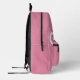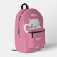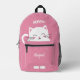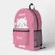 Backpack: Introducing the most adorable companion for your everyday adventures: the Purrfectly Pink Kitty Backpack! The front features a precious white kitten that steals the spotlight, sporting a heart-shaped nose, a sweet smile and curled tail, adding an extra touch of cuteness to the design. It's set against a soft pink backdrop with a delicate pattern of lighter pink hearts around it, evoking feelings of warmth and affection. The front pocket of the backpack is adorned with a personalised touch—a monogram in a whimsical font, with tiny pink hearts. This detail adds a unique flair to the backpack, making it truly one-of-a-kind.