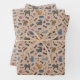 This whimsical design features cartoon cats in various poses, surrounded by paw prints, yarn balls, fish bones, cat toys, food bowls and bones on a light brown background. Ideal for kids, this wrapping paper brings a fun, pet-themed charm to any gift.