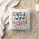 The "Pursue with Passion" throw pillow design features an inspiring message against a soft, neutral background. The elegant typography in bold letters stands out, conveying a sense of determination and drive. The text is accompanied by subtle artistic accents, such as delicate lines or abstract shapes, that add a modern and uplifting touch. This pillow serves as a daily reminder to chase dreams with enthusiasm and focus, making it a perfect decorative piece for a home office, living room, or bedroom.