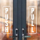 White transparent push and pull door sticker for enter and exit doors. Vertical / portrait orientation. Great for any business / shop / store / restaurant. Use for easily flow of customer traffic.