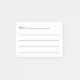 Stay organised in style with this customisable Post-it® notepad! Featuring a clean and practical design, each sheet includes four neatly spaced lines for writing, with the word Date at the top left corner—perfect for noting the day’s tasks, reminders, or journal entries. Whether you're jotting down quick memos, to-dos, or important notes, this minimal layout helps keep your thoughts tidy and time-stamped. Ideal for work, school, or home organisation!