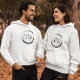 Add your own round business logo image to create a promotional hoodie. This sample features a black ink logo against white cloth.