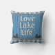 Add the name of your lake to this beautiful blue and grey pillow. Every lake house needs one.