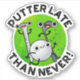 Putter Later Than Never Funny Golf Pun features a trio of golf putter, ball and tee running late . Perfect pun gift for family and friends who love cute sports golf puns.