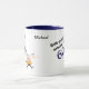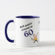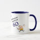 This mug makes a cute gift for anyone who is turning the big 60. It features your custom text in blue and black stylised text. Currently it says "Still puttin' around at 60". A cartoon golfer is taking a whack at his ball beneath the text. The image and text are on each side, with your name or other custom text in the middle. Funny!