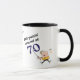 This mug makes a cute gift for anyone who is turning the big 70. It features your custom text in blue and black stylised text. Currently it says "Still puttin' around at 70". A cartoon golfer is taking a whack at his ball beneath the text. The image and text are on each side, with your name or other custom text in the middle. Funny! *This design uses image © Graphics Factory.com*