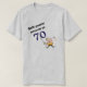 This shirt makes a cute gift for anyone who is turning the big 70. It features your custom text in blue and black stylised text. Currently it says "Still puttin' around at 70". A cartoon golfer is taking a whack at his ball beneath the text. Funny! *This design uses image © Graphics Factory.com*