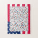 This is a 11"x14" rectangle jigsaw puzzle with a painted USA flag for the background frame. Many sizes and piece count are available. Easily add your rectangle or square photo using the Template provided. Use the Design Tool to change or remove background flag, add text to the frame area or text on your photo. Ideal for parties, reunions, sleepovers, family gatherings-- during the 2026, 4th of July America celebrations.