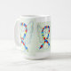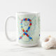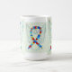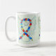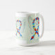 The guardian angel mug features the painting of a puzzle awareness ribbon angel. Puzzle awareness angel ribbon art cups or mugs can be customised with personalised messages to make great cause mugs for fundraisers, awareness cup gifts, or other special events or occasions.
