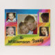 A fun puzzle for the whole family. Five of your favourite photos are placed on a colourful wavy background. The 16x20 inch size provides a nice challenge. However, the design will fit smaller size puzzles too. See Size Options. Personalise the puzzle with a name in large type at the bottom. All photos and the name are easily changed by using the template. If other changes are desired (different type font, colour, size, or placement), select "Personalise this design" then select "Edit using Design Editor." Also use the Design Tool if any of your photos need to be cropped in order to fit a frame (all photos are square). Makes a great gift. You may also want to scroll down to "Transfer design to a product" for a limited list of items this design can be used on.