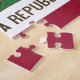 Crafted with meticulous attention to detail, this puzzle is more than just a recreational activity; it's a celebration of California's rich heritage and state pride. The design proudly showcases the iconic flag of California, featuring a white field with a red stripe along the bottom and a prominent red star in the upper left corner known as the "California Lone Star Flag."