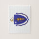 Crafted with meticulous attention to detail, this puzzle is more than just a recreational activity; it's a celebration of Massachusetts' heritage and state pride. The design proudly showcases the iconic flag of Massachusetts, featuring a white field with a blue shield in the centre. The shield depicts an image of a Native American with a bow and arrow, standing beneath a white star with a blue ribbon reading "ENSE PETIT PLACIDAM SUB LIBERTATE QUIETEM," which translates to "By the sword we seek peace, but peace only under liberty."