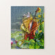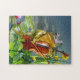 Frogs are often portrait as musicians. The frog for this puzzle is adorable and funny. The cello seems to be the right instrument for this befuddled character. The scene is humourous and cute, a perfect piece for the puzzle friend.