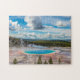 Game puzzle shown with a photo print of a beautiful hot pot in Yellowstone Park.