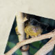 Pictured hanging onto a tree is a very small pygmy marmoset