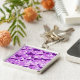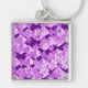 Array of pyramid shaped crystals in shades of lavender and purple against a deep purple background