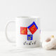 Inspire someone's Maths Side with this cool Pythagoras Theorem mug. PYTHAGORAS’ THEOREM TUTORIAL: In Right Angled Triangles (that’s triangles in which one angle is 90 degrees), the square created by the longest side (called the Hypotenuse, which is always the side opposite the right angle) has exactly the same sized area as the squares created by the other two sides, put together. The Hypotenuse is usually labeled ‘c’, and the other two sides are usually labeled ‘a’ and ‘b’. So we say, c squared = a squared + b squared. * USE OF THEOREM: If we know the lengths of two of the sides of a right angled triangle, then we can use this theorem to find the length of the third side. (But remember it only works on Right Angled Triangles!). * EG: Let’s say in a right angled triangle side ‘a’ is 4cm long and side ‘b’ is 3cm long. Then side ‘a’ creates a square with area 16cm squared (4x4), and side ‘b’ creates a square with area 9cm squared (3x3). So, the square created by side ‘c’ (the hypotenuse side) must be 16 + 9 = 25cm squared. This means that the length of side ‘c’ is 5cm (because 5x5=25). * NOTE: Although this relationship between the sides of Right Angled Triangles is named after Pythagoras, he was not the first person to discover it. It had already been known about around the world well before Pythagoras was even born.