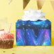 A pink and blue fractal interpretation of the Northern Lights and stars reflected on the surface of the sea. Qaanaaq is a settlement in northern Greenland.