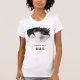 White shirt and Black design and text. Simple. Neutral.