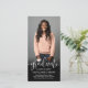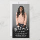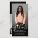 Share the joy of a high school or college graduation with elegant combination announcement and invitation cards featuring two photos and a custom QR code. With this downloadable card you can announce the graduate's achievement and provide any additional photos and details through an online location of your choice such as a website, social media page, digital announcement, party invitation, or photo album. Depending on how it's set up, the link could provide a place for friends and family to post an online note, give a payment app gift, or view more information, such as party details and rsvp. The modern black and white design features a mortar board cap, trendy script calligraphy, elegant classic typography, and two photos of your choice, such as senior pictures or images from the commencement ceremony. The pictures and wording on this template are simple to personalise and the colours are easy to change using the Zazzle design tool. This chic downloadable vertical graduation card is a stylish way to announce a special day celebration. Congratulations to the graduate!