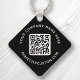 Double sided keychain with your QR code and custom text on a black or custom colour background. Change fonts and font colours, move and resize elements with the design tool.